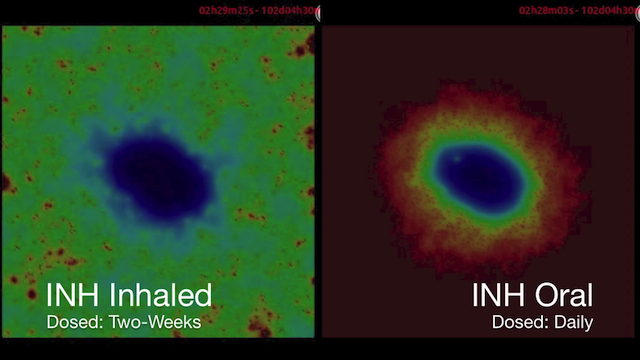 Time lapse of INH dynamics over a 14 day treatment window.