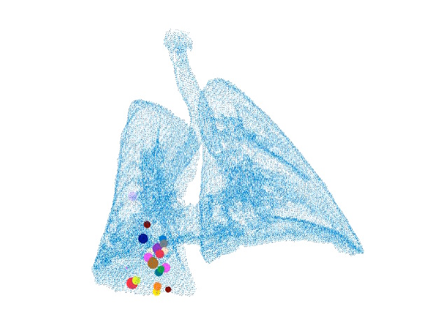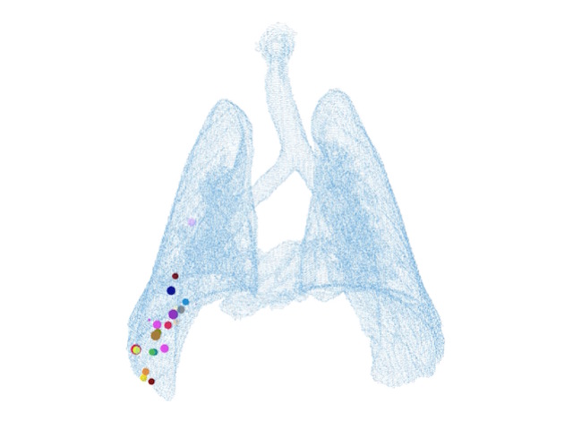 in the lower right lung (bottom left in image of simulation). Granulomas found in upper
